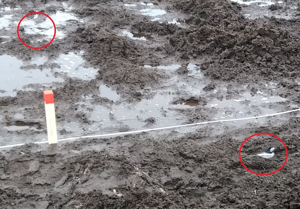 測量が終わって ほっとしていると、2羽の鳥が畑で何かついばんでいました。