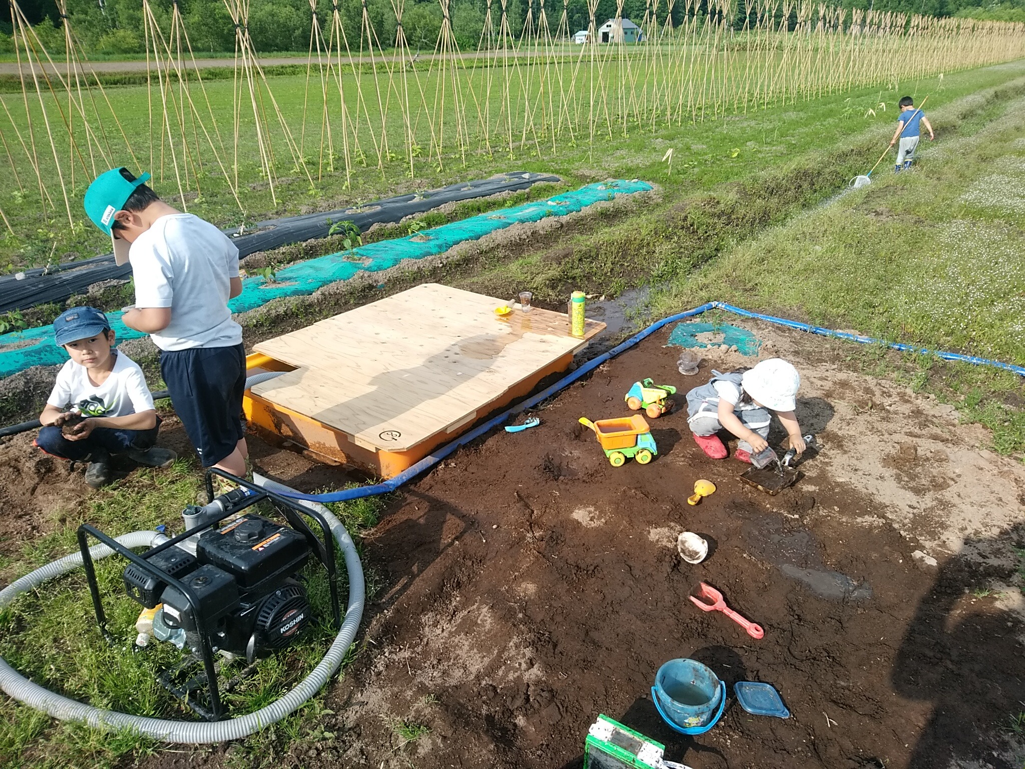 そんなファームのハウスの側では子供たちが泥んこ遊び。